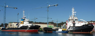 El pasado viernes día 9 pude fotografiar en Navia los remolcadores IBAIZABAL DIEZ y VEHINTISEIS, ambos en fase de armamento a flote en las instalaciones de Astilleros Armón SA.